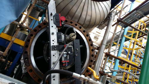 我们公司的专业设备可直接至现场,在任意位置、角度直接安装在法兰内侧或外侧,安装后进行车削修复,使密封面达到密封的技术要求。减少拆装、运输时间和成本。 此技术广泛应用于海洋、石油化工、水利、钢铁、电力等行业